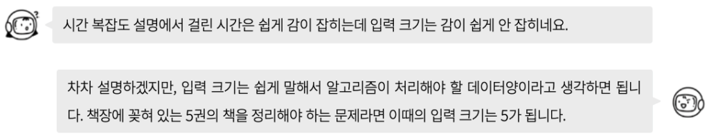 ※ 점근 표기법이란 어떤 함수의 증가하는 추세를 표현하는 표기법입니다. 다만 점근 표기법은 이 책에서 자세히 설명하기는 적합하지 않으므로 이 정도만 이야기하겠습니다.