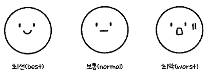 시간 복잡도를 측정하는 방법은 앞서 검색 문제에서 살짝 언급한 ‘연산 횟수’와 관련이 있습니다. 즉, 시간 복잡도는 알고리즘이 시작한 순간부터 결괏값이 나올 때까지의 연산 횟수를 나타냅니다. 그리고 시간 복잡도를 측정한 결과는 다음과 같이 최선(Best), 보통(Normal), 최악(Worst)의 경우로 나눕니다.