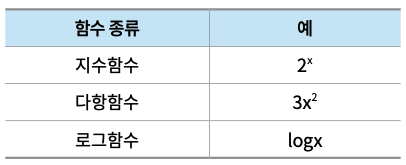 지수함수와 로그함수의 경우도 ‘x가 무한히 커진다’라는 것만 상상만 할 수 있으면 쉽게 이해할 수 있습니다. 로그함수는 다항함수보다 느리게 증가하고, 지수함수는 다항함수보다 빠르게 증가합니다. 그러므로 최고차항만 남기는 작업에서 우선 순위는 다음과 같을 겁니다.